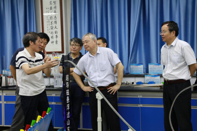 期间,林黎明副厅长一行到科教仪器研发中心仪器展厅参观并体验了中心自主研发的各类科教仪器,杨万民教授等仪器研发方向学术带头人详细介绍了仪器研发的进展,并演示介绍了所研发的科普实验和教学实验仪器。林黎明副厅长高度肯定了p站视频 在基础教育人才培养所做的贡献和基础教育实验教学改革方面卓有成效的工作,希望p站视频 进一步发扬“西部红烛”精神,为我党培养更多优秀的基础教育教师、在更大范围内做好科普教育、科教扶贫、建设好科普教育平台让更多人受益、提升大众的科学素养。