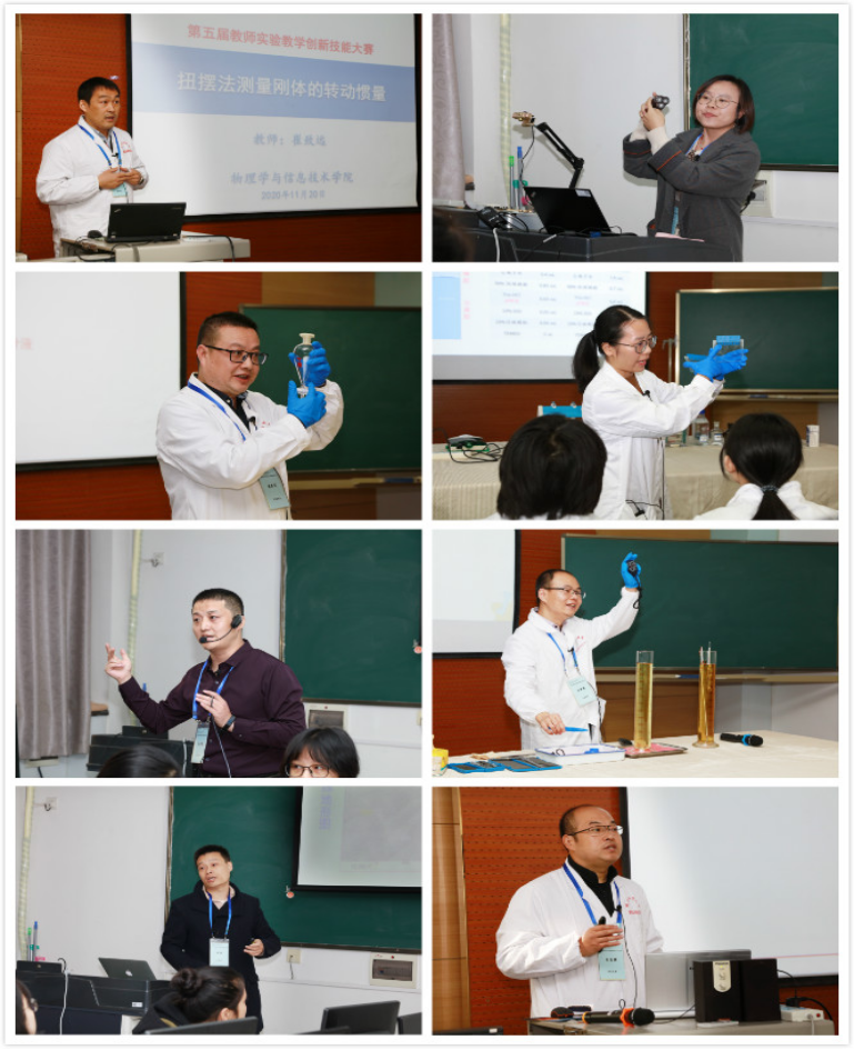 11月19日下午、20日全天,为实验教学课堂讲授和实验教学技能演示环节。生命科学学院牛俊峰、李雪娟、郑倩;食品工程与营养科学学院李婷、任道远;计算机科学学院刘恋、马君亮、洪灵;地理科学与旅游学院周毅;物理学与信息技术学院程勇军、王恒通、崔致远;化学化工学院李高强、马艺;材料科学与工程学院周亚军等15位决赛选手在雁塔校区教学七楼604会议室和附505机房进行课堂讲授及实验技能比赛,专家通过听(看)课、提问等对选手课堂教学、技能演示、实验教学创新等,按照评分标准,对每位选手做了量化打分。比赛过程中,参赛老师巧妙运用多媒体技术,恰到好处的插入实验演示,加上深入浅出的讲解,使整个课堂精彩纷呈。选手们讲授大多条理清晰、语言流畅、重点突出,实验操作技能娴熟,课堂互动丰富,充分展示了各自的教学特色和我校实验教师的风采。与往年相比,新增了虚拟仿真软件应用及BB网络教学平台的展示,给评委们留下了深刻印象。