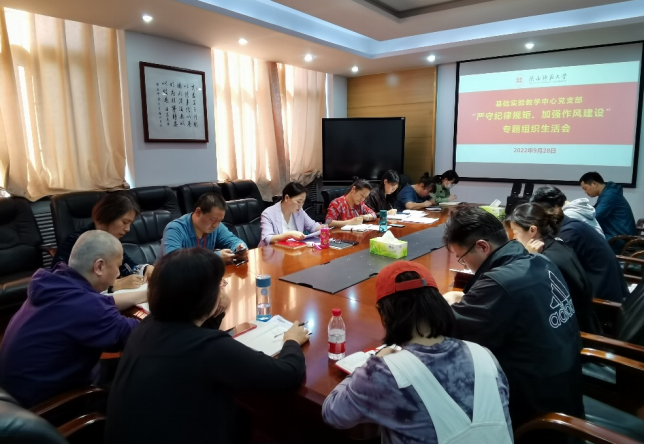 按照学校纪委通知要求和材料科学与工程学院党委工作部署,2022年9月28日下午,p站视频 党支部在雁塔校区教学七楼7213会议室召开了“严守纪律规矩、加强作风建设”专题组织生活会。材料科学与工程学院材料学院党委副书记、纪委书记靳春泓同志应邀列席,会议由党支部副书记、中心副主任苏争艳同志主持。