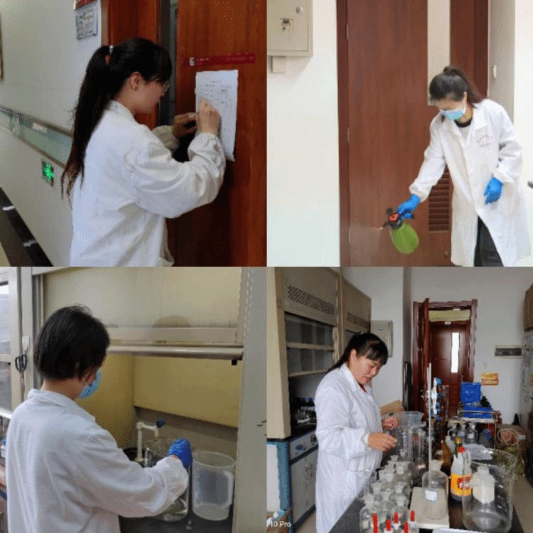 2020年6月8日,本科生基础实验课正式复课。为确保师生安全健康,并保质保量开好实验课,在中心党支部两位书记张尊听、赵华荣同志的带领下,从管理人员到一线实验技术人员提前一周就紧锣密鼓地开始工作,从准备学生做实验所需要的仪器及试剂,到每天早、中、晚对实验室进行消毒并做记录等常态化排查防控,尽管工作任务非常繁重但大家热情洋溢,以最周密细致的服务,迎接师生归来。正式开课后,各位实验员老师每天扎实做好防控物资储备、重点区域消杀通风、普及防疫常识等工作,引导上课师生严格做好个人防护、养成良好卫生习惯。为了完成既定任务,以梁予、彭菊芬、卫芬芬、刘环环、马志爽、张可嘉、石静瑜等一大批党员同志为代表,全体中心人员发扬坚忍不拔的品质,克服种种困难,从早上8点到晚上10点开足马力,只为保障我校基础实验教学工作安全、有序进行。这些挥洒的汗水,这些对家和国渗入骨髓的爱,凝聚成强大的民族向心力,是共产党人家国情怀的生动写照。