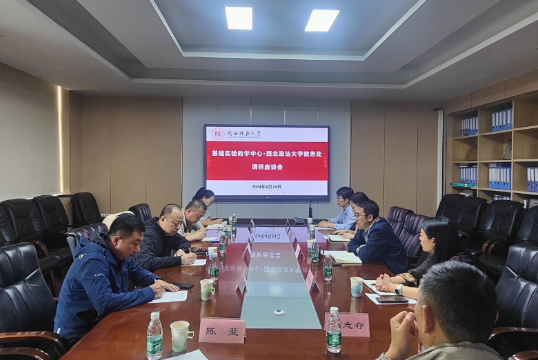 4月24日,西北政法大学教务处副处长何玉军、教务处实践实验科殷晓明、公安学院(公共安全学院)实验中心陈亮,刘艳老师一行来我中心座谈交流,中心主任陈晓明、副主任苏争艳、各专业负责人及实验室安全委员会成员等参加了会议,会议由苏争艳副主任主持。