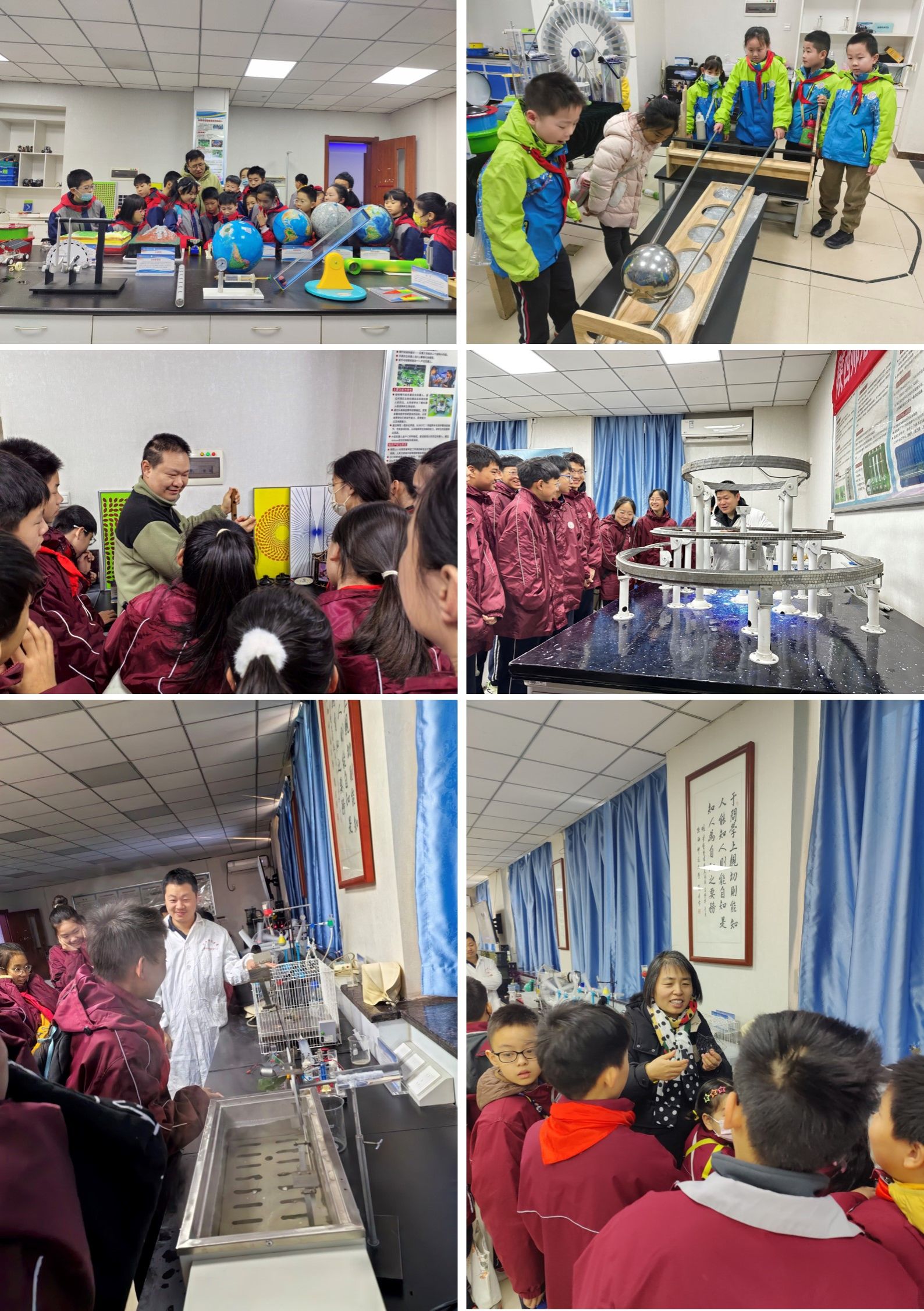自然科学科普基地在活动当天开放科教资源展厅,由p站视频 各专业老师以讲授演示的方式分别向冬令营学生讲述了超导磁悬浮、凸(凹)透镜成像、光线弯曲传播等仪器的基本原理,并结合其在社会实际中的应用,加深学生对科学知识的理解。另外,在老师们的帮助下,引导学生实践体验摩擦静电起电机、氢气爆鸣实验、钢球爬坡、鱼洗、视错觉现象以及地球地形地貌模型观察等多学科实验项目。