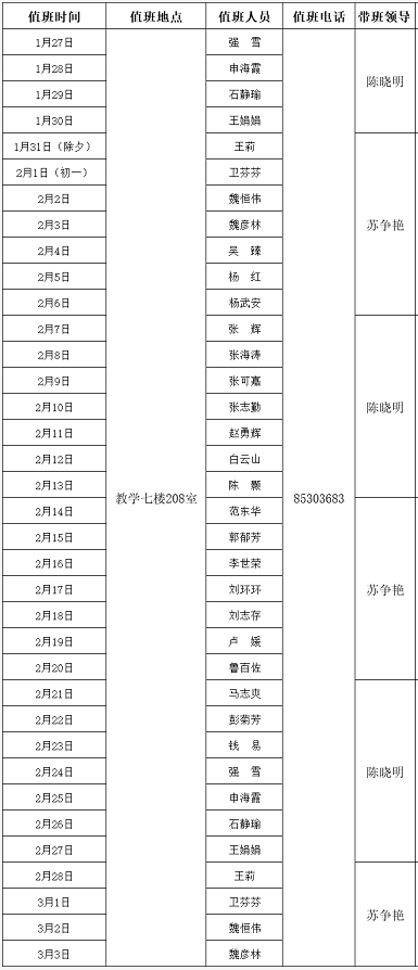 2022年寒假值班安排表
