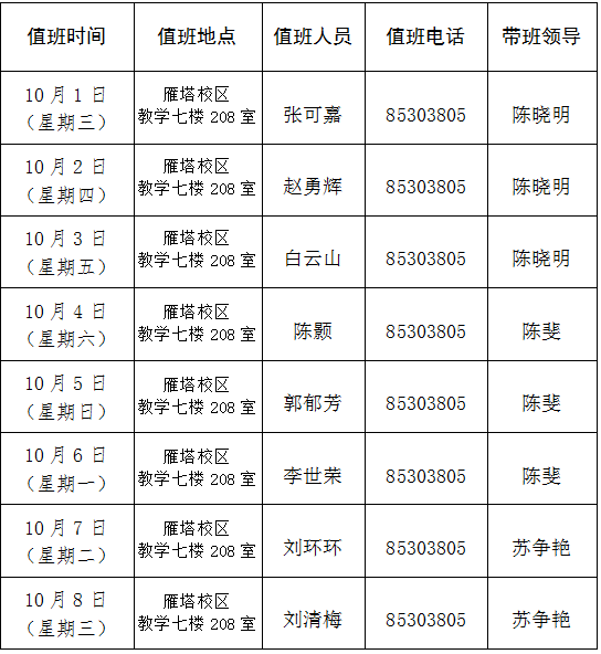 2025年国庆节、中秋节值班安排