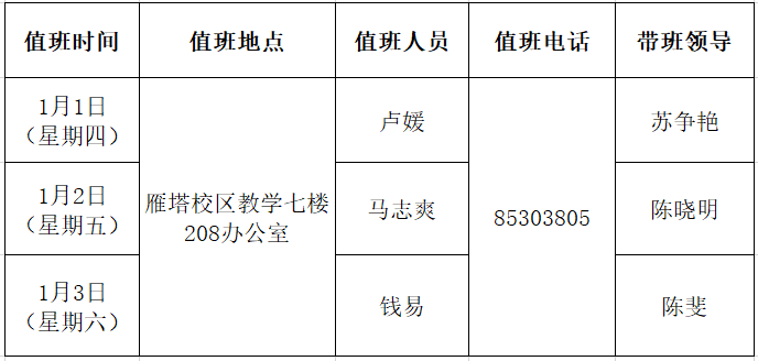 2026年元旦值班安排表